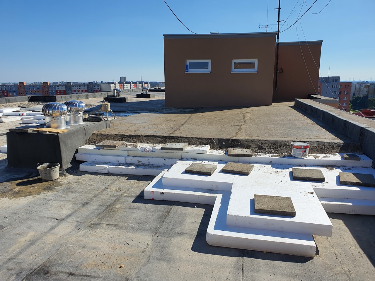Voda je najväčším nepriateľom stavby. Realizujeme precízne spádové vrstvy, ktoré zabezpečia rýchly a plynulý odtok zrážkovej vody do vpustí alebo žľabov.